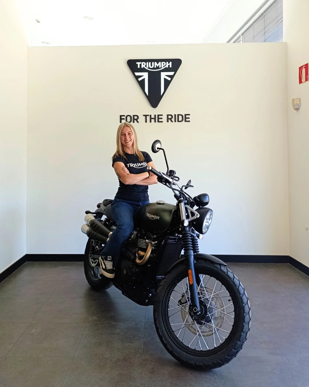 Jefa de Posventa - Al frente del área de posventa, recambios y taller, está María José, siempre a tu disposición para brindarte la mejor atención personalizada y ayudarte en todo lo que necesites para tu moto.